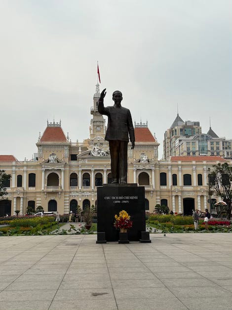 Our first stop was this buzzing city with two names. Saigon is the old name that was before the war and Ho Chi Minh City is the new name. Ho Chi Minh was a Vietnamese revolutionary and politician. Ideologically close to the Marxist-Leninist line, he founded the Indochine Communist Party in 1930 (it later became the Communist Party of Vietnam). He served as the chairman of the party until his death. He was the first president of the Democratic Republic of Vietnam from 1945 until his death in 1969. From 1945-55 he was also the first prime minister. A statue has been raised in honour of him. It is situated in the center of Saigon, close to the Opera house. The statue is 7.2 meters long, made of bronze and symbolising the affection and respect the Vietnamese have for their founding father.
