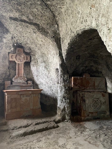 What don’t I do for literature? I did venture up the stairs again. Martin had already gone up, but I needed to stop every 10th step. IT WAS STEEP. And, it must have been far more than hundred steps. It felt as I could have ended up at the hospital with a heart condition. Once up on the hill again, having caught my breath, I saw Martin speak to someone from the monastery museum. It turned out that the house was situated just opposite the monastery. I had already taken a photo of that building which you could see over the garden area. But, the house was yellow?! And … it was closed for renovations. I was somewhat mad, since it said on line that the museum was open.