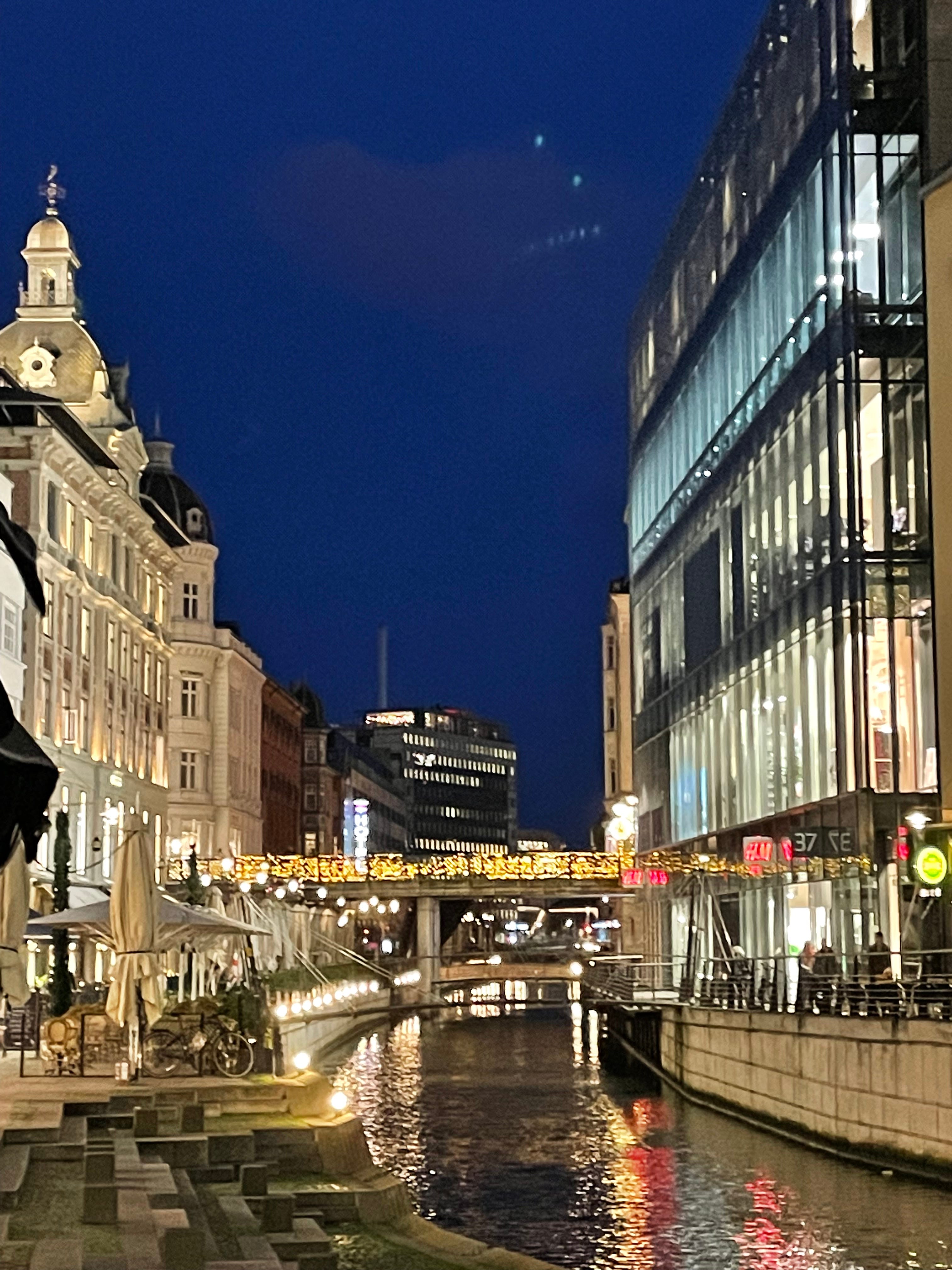 I found a rather inexpensive hotel called Cabinn. It has small rooms according to the slogan “All You Need To Sleep”, but it is modern and fresh. The hotel is situated in the centre of Aarhus, giving us walking distance to everything. It was wonderful to stroll around the old pebble stoned streets and old houses. A canal runs through it all to give it a mysterious air of being in the centre of travelling.