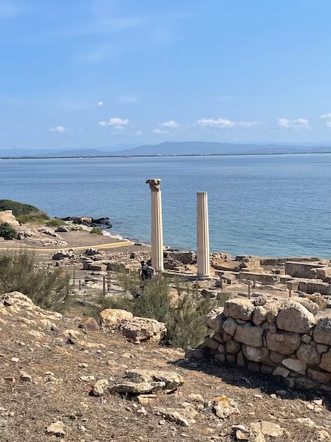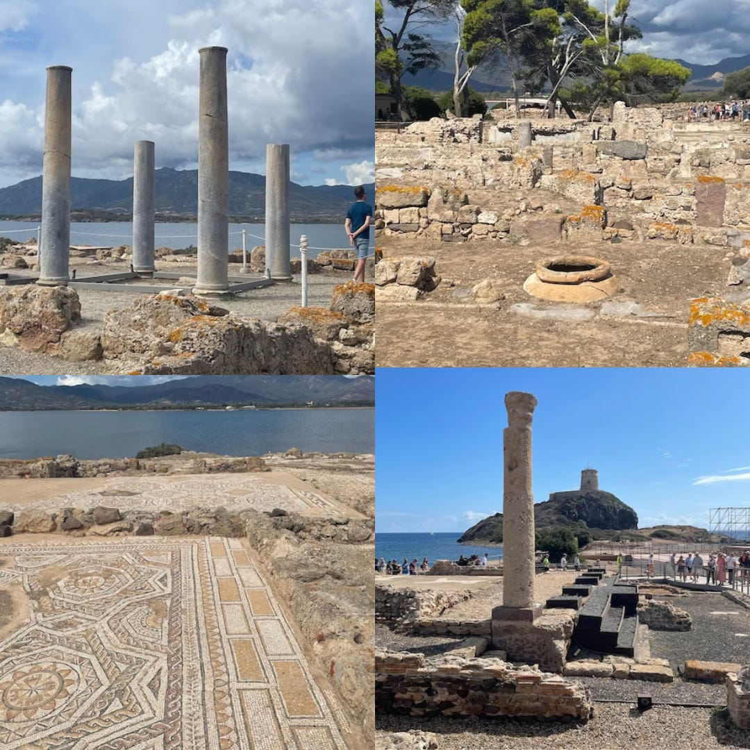 The first Phoenician city in Sardinia in the 8th century BC, it was an important commercial crossroad and port. From here it was possible to sail away in any weather. The city developed in the 4th century BC under Punic rule (that is the Carthaginians). As usual in those days, the Romans could not keep their hands off the island and conquered it in 238 BC. This was the highlight of the city when it grew to eight thousand inhabitants. We thought these ruins were on the higher scale of Roman ruins we have seen. In photos it is mostly a rubble of stones, but walking around the site you got a good idea of what it looked like and how it was planned. As we know, the Romans don’t go wrong in these kind of matters. We enjoyed the visit on another very hot day.